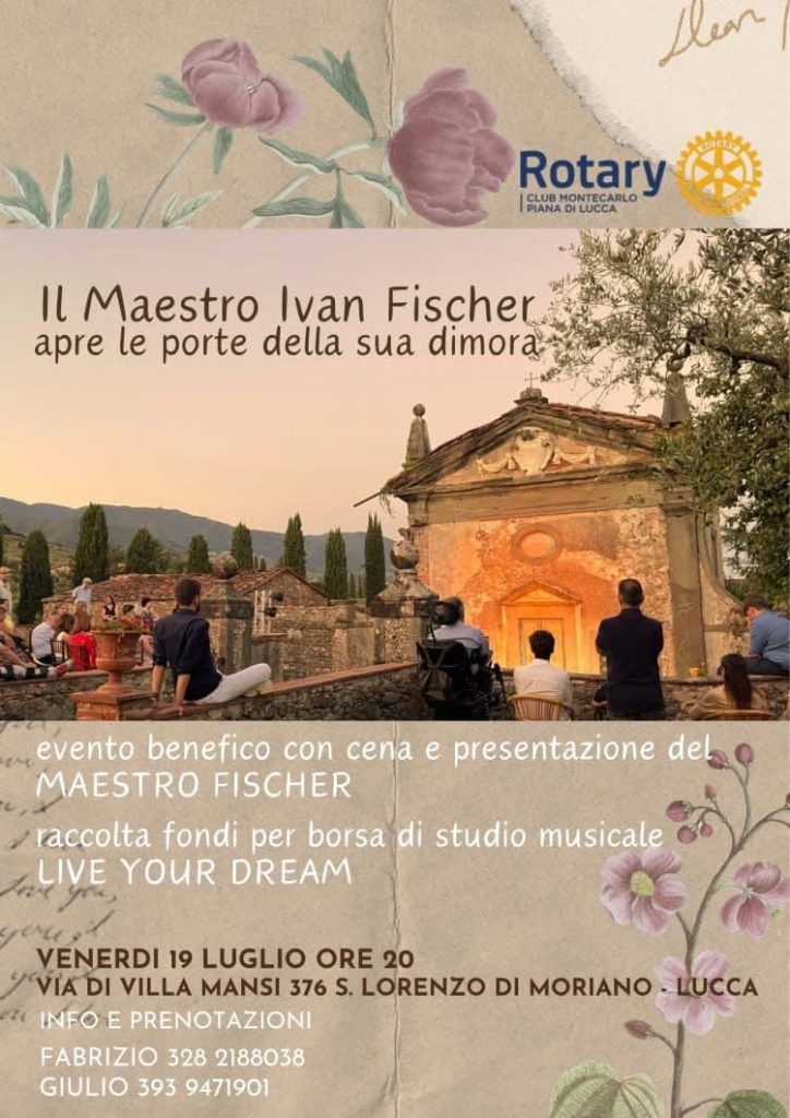 Evento benefico per raccolta fondi borsa di studio musicale Live Your Dream Il primo evento del nuovo anno rotariano è stato all’insegna della musica e della conoscenza di un grande Maestro.Iván Fischer direttore d’orchestra e compositore ungherese, fondatore nel 1983 dell’Orchestra Festival di Budapest, ha incontrato e ospitato il Club nella sua meravigliosa dimora del nostro territorio.Una occasione […]